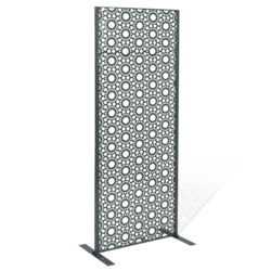 En savoir +Apportez une touche déco à votre extérieur grâce à ce panneau en métal ajouré. Son design ultra moderne habillera votre terrasse ou votre mur avec élégance. Fabriqué en métal ajouré, le panneau universel ROSAS est résistant aux intempéries et ne demande aucun entretien. Vous n'aurez pas à vous souciez de sa longévité.Conçu pour s'adapter à votre environnement extérieur, ce panneau, en plus d'être stable, vous propose 4 modes de fixation : choisissez de le fixer directement au sol de votre terrasse ou sur votre pelouse ou au contraire, accrochez-le à votre mur ! Vous disposez d'un panneau en bois composite ? Vous pouvez également insérer le panneau ROSAS entre vos planches. Résistant et durable, vous pourrez longuement profiter du design du panneau décoratif universel. Ses formes arrondies ajourées sont ultra modernes et apportent une note tendance à votre extérieur ! Notre astuce : faîtes grimper vos plantes le long du panneau ROSAS pour un effet végétal garanti ! Dimensions du panneau décoratif ROSAS- Dimensions totales : largeur 50 CM x Hauteur 150 CM x épaisseur 1,8 CM- Dimensions des pieds : Longueur 40 CM x largeur 5 CM x Hauteur 4 MM- Épaisseur de la structure : 18 x 18 x 1 MM- Épaisseur du métal : 0,8 x 1,8 MM- Peinture spray- Couleur : gris 425CCe modèle convient aux panneaux occultants disposant d'une épaisseur de lame de 1,8 CM.Découvrez nos autres panneaux occultants sur notre boutique en ligne !