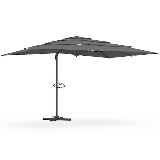 Parasol déporté inclinable rotatif 360 CALVI multi toile grand vent gris 3x4 M avec housse