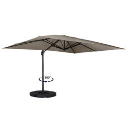 Envie de vous protéger des rayons du soleil ? Le parasol déporté rotatif 360 CALVI taupe est l'accessoire indispensable pour que vous puissiez profiter pleinement de votre extérieur lors de journées ensoleillées ou même de faibles intempéries ! Grâce à ses généreuses dimensions de 3 m x 4 m, vous di