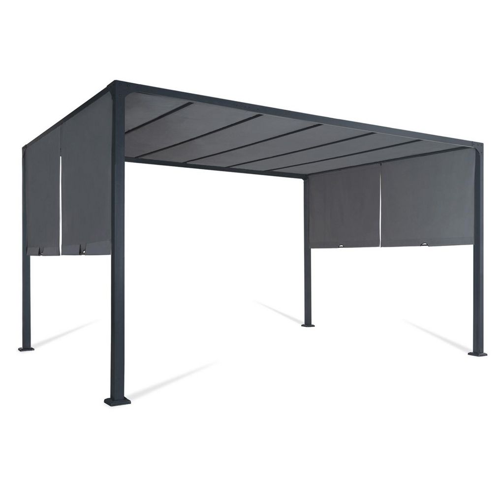 Pergola coulissante 2 pans 3x4 M belvédère de jardin toile gris anthracite