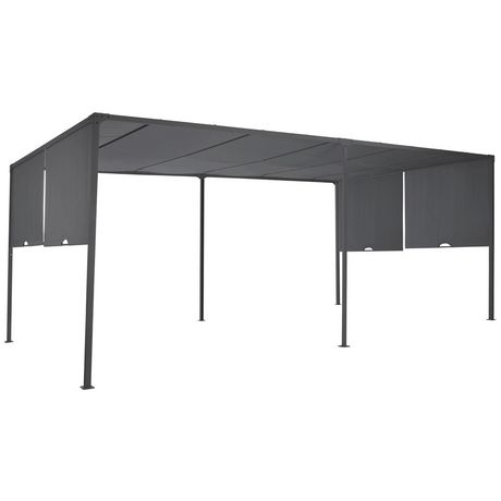 Pergola coulissante 2 pans 3x6 M belvédère de jardin toile gris anthracite
