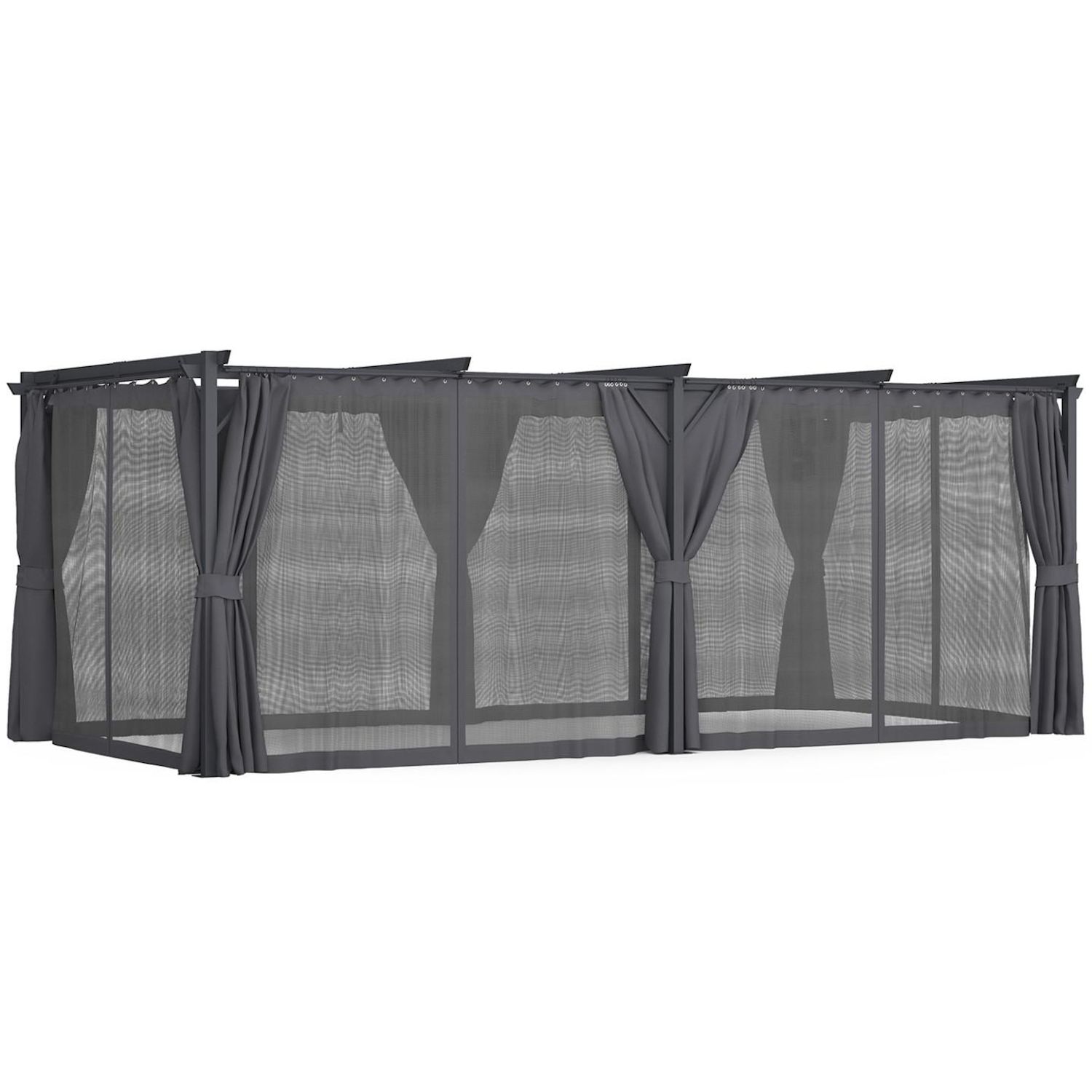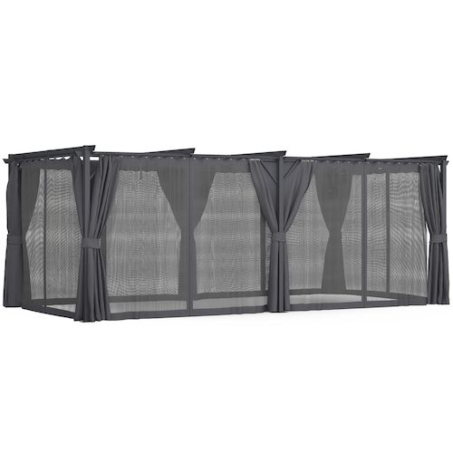 Pergola édition intégrale moustiquaire toit rétractable 3x6 M et 6 rideaux gris