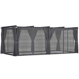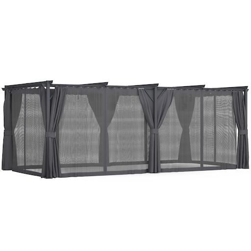 Passez d'agréables moments dans votre jardin grâce à cette pergola gris anthracite dotée d'un toit rétractable, de 6 rideaux et d'une moustiquaire. Votre pergola vous protège afin que vous profitiez des belles journées ensoleillées, du matin au soir, quelle que soit la position du soleil.La pergola gris anthracite toit rétractable s'adapte à vos besoins : créez un espace ombragé en tendant la toile ou au contraire, laissez passer les rayons du soleil en ouvrant la toile pour bénéficier d'un grand ensoleillement. Grâce à cette édition, vous pourrez également profiter des rideaux pour ajuster l'ombrage selon vos envies ! Vous disposez d'un ombrage optimal, parfait pour un repas à l'abri du soleil. Votre pergola est équipée de 6 rideaux occultants couvrant la totalité de ses 4 côtés. Ouvrez et fermez facilement vos rideaux grâce au système de tringles les faisant coulisser. Vous disposez ainsi d'une structure totalement adaptable à vos besoins.Profitez du soleil en attachant les rideaux à leur poutre et en rétractant la toile de toit ou déployez vos rideaux et votre toile de toit pour occulter et ombrager votre espace. La pergola vous offre tout un panel de possibilités. Equipée d'une moustiquaire, cette pergola vous garantit un espace protégé, idéal pour les repas ou moments de détente. Profitez ainsi des soirées d'été sans être dérangé par les insectes !Grâce à une structure en métal gris foncé, cette pergola de 3,95 x 2,90 m vous assure stabilité et longévité. Robuste, la pergola autoportée se fixe au sol avec ses pieds de 5 x 5 cm. Conçue avec des matériaux de qualité, la pergola est équipée d'une toile de toit et de rideaux 100% polyester 180 gr/m². N'attendez plus pour passer de joyeux moments en famille ou entre amis tout en profitant du soleil selon vos envies ! Nous vous conseillons en cas d'intempéries (pluie et vent) de retirer la toile de sa structure afin de prévenir le risque de stagnation d'eau. Nous vous recommandons également d'enlever les rideaux de la structure de la pergola en cas de forts vents. Veillez également à bien fixer la pergola au sol afin d'assurer une bonne stabilité.Dimensions de la pergola moustiquaire toit rétractable 3x6M et 6 rideaux grisDimensions globales : Longueur 595 cm x largeur 290 cm x Hauteur 220 cmDimensions des pieds : L. 6 x l. 6 x H. 220 cmDimensions des poutres : H. 60 x l. 30 x ép. 0,7 mmDistance entre les pieds : 258 / 276 cmHauteur des rideaux : 210 cm 6 Rideaux occultant couvrant les 4 faces munis de zip6 Rideaux moustiquaire couvrant les 4 faces munis de zipColoris : Structure, toile et rideaux gris anthracite Toile coulissanteSystème de tringle pour les rideauxToile de toit et rideaux 100% polyester grise de 180 gr/m²Structure en acierÀ monter soi-mêmeRetrouvez l'ensemble de notre gamme de pergolas sur notre boutique en ligne !