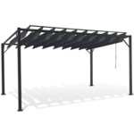 Descriptif de la pergola lames orientables grise 3x4 MModerne et très tendance, cette pergola gris anthracite et ses lames orientables vous protègent des rayons du soleil selon vos besoin. La tonnelle s'adapte aussi bien à votre terrasse qu'aux mouvements du soleil et permet un taux d'ombrage person
