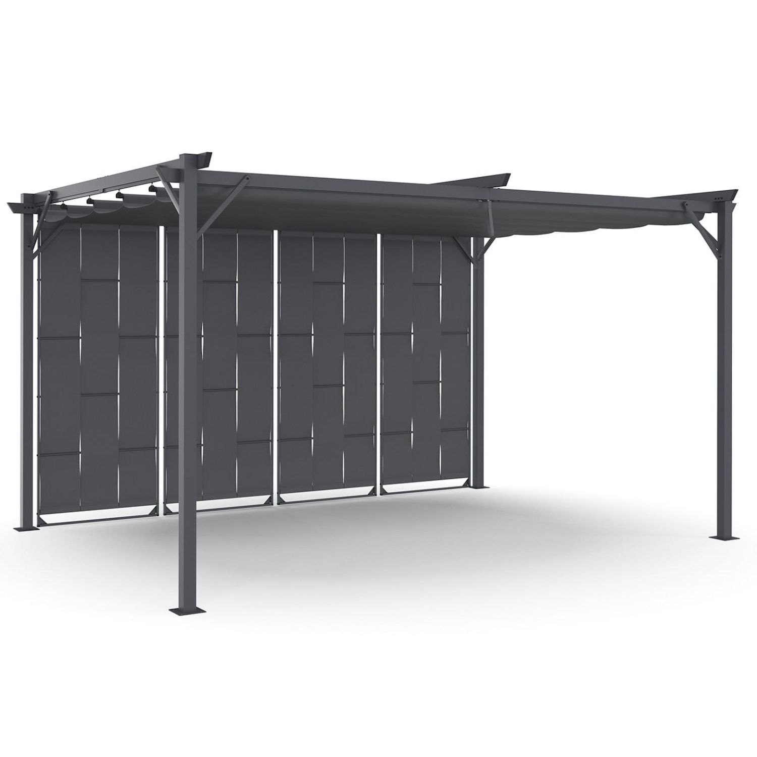 Pergola persienne 3x4 M gris anthracite avec toit rétractable et 4 pans modulables