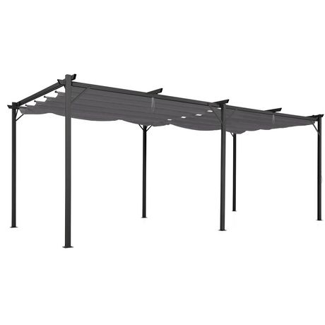 Passez d'agréables moments dans votre jardin grâce à cette pergola gris anthracite dotée d'un toit rétractable. Votre pergola vous protège afin que vous profitiez des belles journées ensoleillées, du matin au soir, quel que soit la position du soleil. La pergola avec toit rétractable s'adapte à vos besoins : créez un espace ombragé en tendant la toile ou au contraire, laissez passer les rayons du soleil en ouvrant le toit pour bénéficier d'un grand ensoleillement. Grâce à une structure en métal gris foncé, cette pergola de 5.90 x 2.90 m vous assure stabilité et longévité. Robuste, la pergola se fixe au sol avec ses pieds de 60 x 60 mm. Conçue avec des matériaux de qualité, la pergola est équipée d'une toile de toit en polyester 180 gr/m². N'attendez plus pour passer de joyeux moments en famille ou entre amis tout en profitant du soleil selon vos envies ! Nous vous conseillons en cas d'intempéries (pluie et vent) de retirer la toile de sa structure afin de prévenir le risque de stagnation d'eau. Veillez également à bien fixer la pergola au sol afin d'assurer une bonne stabilité.Dimensions de la pergola grise 3x6 M toit rétractableDimensions globales : Longueur 590 cm x largeur 290 cm x Hauteur 220 cmLargeur des pieds : 60 x 60 mmPoutres supérieures de dimensions : H. 60 x l. 30 x 0,7 (épaisseur) mmToile coulissanteDistance entre les pieds : 258 / 276 cmMatériaux : Structure en acier, toile en polyester 180 gr/m²Coloris : Structure gris anthracite, toile et stores gris anthraciteÀ monter soi-mêmeRetrouvez l'ensemble de notre gamme de pergolas sur notre boutique en ligne !