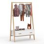 Le portant enfant LEON est le choix parfait pour aménager une chambre d'enfant avec style et fonctionnalité. Son design doux et moderne, associant blanc et finitions bois façon hêtre, crée une ambiance apaisante et chaleureuse, propice au bien-être des plus jeunes. Sa forme tipi apportera de l'origi
