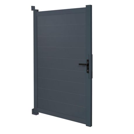 Offrez à votre propriété une protection à la fois moderne et robuste avec ce portillon 100 x 160 cm en aluminium gris anthracite.Son coloris gris anthracite et son design moderne et élégant s'intégreront harmonieusement à votre extérieur et s'associeront facilement à votre portillon. Il se fondra parfaitement dans le paysage tout en ajoutant une touche de sophistication.Son design vous offrira une protection contre les regards des voisins et des passants. Restez ainsi à l'abri des regards et délimitez votre espace extérieur grâce à notre portillon et l'ensemble de nos occultants. Très pratique, ce portillon dispose d'une porte battante, d'une butée d'arrêt centrale et de 2 poignées, une de chaque côté, offrant une large ouverture pour une accessibilité optimale à pied ou à vélo par exemple. Lors du montage, choisissez le sens d'ouverture de votre portillon et de sa butée d'arrêt centrale en fonction de votre extérieur et du positionnement souhaité. Pour une installation parfaite, la distance entre les poteaux doit être de L. 105 x H. 172 cm. Verrouillable grâce à une serrure à clé, ce portillon garantit la sécurité de votre propriété. Le portillon peut ainsi être verrouillé à clé, et trois clés sont fournies pour une tranquillité d'esprit maximale. Fabriqué en aluminium, le portillon 100 x 160 cm est conçu pour résister aux conditions extérieures au fil des années. Sa structure aluminium lui garantit ainsi durabilité et robustesse. Livré avec un kit de visserie et de fixation complet, le portillon se fixe au mur afin de résister aux intempéries. Facile à installer, il est également très simple à entretenir. Le portillon est équipé d'une serrure robuste et d'une poignée pour une utilisation sécurisée et pratique au quotidien.N'attendez plus pour sécuriser votre maison et votre extérieur ! Que ce soit pour délimiter votre propriété ou sécuriser votre jardin, ce portillon est le choix idéal pour allier praticité, esthétique et longévité. Pour parfaire votre entrée extérieur, découvrez également nos auvents de porte d'entrée.Dimensions du portillon 100 x 160 cm aluminium gris anthraciteDimensions globales (entre les poteaux) : Longueur 105 x Hauteur 172 cm Dimensions de la porte : L. 100 x H. 160 cmDimensions des montants : L. 7 x l. 4.5 x H. 160 cmDimensions des traverses : L. 100 x l. 3.5 x H. 7 cmDimensions d'une latte : L. 100 x l. 2 x H. 16 cmProfondeur avec poignées : l. 16 cmType d'ouverture : battantMatériaux : aluminiumColoris : gris anthraciteInclus : 2 poignées, serrure à clé (3 clés), butée d'arrêt, kit de visserie completÀ monter soi-même Retrouvez tous nos portillons de jardin sur notre boutique en ligne.