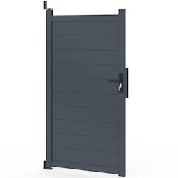 Offrez à votre propriété une protection à la fois moderne et robuste avec ce portillon 100 x 180 cm en aluminium gris anthracite.Son coloris gris anthracite et son design moderne et élégant s'intégreront harmonieusement à votre extérieur et s'associeront facilement à votre portillon. Il se fondra parfaitement dans le paysage tout en ajoutant une touche de sophistication.Son design vous offrira une protection contre les regards des voisins et des passants. Restez ainsi à l'abri des regards et délimitez votre espace extérieur grâce à notre portillon et l'ensemble de nos occultants. Très pratique, ce portillon dispose d'une porte battante, d'une butée d'arrêt centrale et de 2 poignées, une de chaque côté, offrant une large ouverture pour une accessibilité optimale à pied ou à vélo par exemple. Lors du montage, choisissez le sens d'ouverture de votre portillon et de sa butée d'arrêt centrale en fonction de votre extérieur et du positionnement souhaité. Pour une installation parfaite, la distance entre les poteaux doit être de L. 105 x H. 192 cm. Verrouillable grâce à une serrure à clé, ce portillon garantit la sécurité de votre propriété. Le portillon peut ainsi être verrouillé à clé, et trois clés sont fournies pour une tranquillité d'esprit maximale. Fabriqué en aluminium, le portillon 100 x 180 cm est conçu pour résister aux conditions extérieures au fil des années. Sa structure aluminium lui garantit ainsi durabilité et robustesse. Livré avec un kit de visserie et de fixation complet, le portillon se fixe au mur afin de résister aux intempéries. Facile à installer, il est également très simple à entretenir. Le portillon est équipé d'une serrure robuste et d'une poignée pour une utilisation sécurisée et pratique au quotidien.N'attendez plus pour sécuriser votre maison et votre extérieur ! Que ce soit pour délimiter votre propriété ou sécuriser votre jardin, ce portillon est le choix idéal pour allier praticité, esthétique et longévité. Pour parfaire votre entrée extérieure, découvrez également nos auvents de porte d'entrée.Dimensions du portillon 100 x 180 cm aluminium gris anthraciteDimensions globales (entre les poteaux) : Longueur 105 x Hauteur 192 cm Dimensions de la porte : L. 100 x H. 180 cmDimensions des montants : L. 7 x l. 4.5 x H. 180 cmDimensions des traverses : L. 100 x l. 3.5 x H. 7 cmDimensions d'une latte : L. 100 x l. 2 x H. 16 cmType d'ouverture : battantMatériaux : aluminiumColoris : gris anthraciteInclus : 2 poignées, serrure à clé (3 clés), butée d'arrêt, kit de visserie completÀ monter soi-même Retrouvez tous nos portillons de jardin sur notre boutique en ligne.