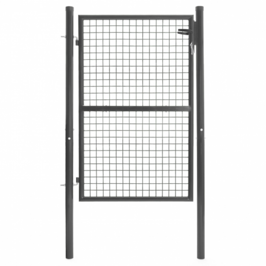 Portillon de jardin 105 x 125 cm en acier gris anthracite avec serrure et poignée