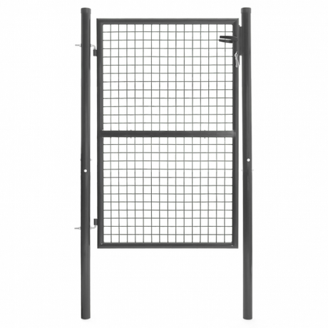 Son coloris gris anthracite et le design sobre et élégant s'intégreront harmonieusement à votre jardin. Il se fondra parfaitement dans le paysage tout en ajoutant une touche esthétique à votre extérieur.Idéal pour fermer une clôture résidentielle ou professionnelle. Très pratique, le portillon est équipé de deux poignées, une de chaque côté offrant un double sens d'ouverture pour une accessibilité optimale. La porte grillagée et la poignée avec serrure garantissent la sécurité de vos aménagements extérieurs. Le portillon de jardin peut être verrouillé à clé, et trois clés sont fournies pour une tranquillité d'esprit maximale. Livré avec un kit de visserie complet, le portillon est facile à installer. Il vous suffit de sceller les poteaux dans le sol et de fixer la porte et les poignées selon les instructions fournies.Les deux poteaux de 6 cm de diamètre à sceller solidement dans le sol assurent une stabilité maximale. Cela rend le portillon résistant même en cas de fortes intempéries ! Fabriqué en acier, le portillon est conçu pour résister aux conditions extérieures. Son revêtement antirouille garantit une longévité exceptionnelle. N'hésitez plus et laissez vous tenter par ce portillon en métal gris anthracite qui se fondra à merveille dans votre jardin ! Dimensions du portillon de jardinDimensions globales : Longueur 105 x Hauteur 175 cm Dimensions hors sol : L. 105 x H. 125 cm Dimensions de la porte : L. 87 x H. 125 cmDiamètre des tubes de la porte : 4 cmHauteur des poteaux : 175 cmDiamètre des poteaux : 6 cmDimensions des carreaux du grillage : L. 5 x H. 5 cmType de pose : scellement sur 50 cm Matériaux : AcierColoris : gris anthraciteInclus : une poignée avec serrure, 3 clés, kit de visserie completÀ monter soi-même Retrouvez tous nos portillons de jardin sur notre boutique en ligne.