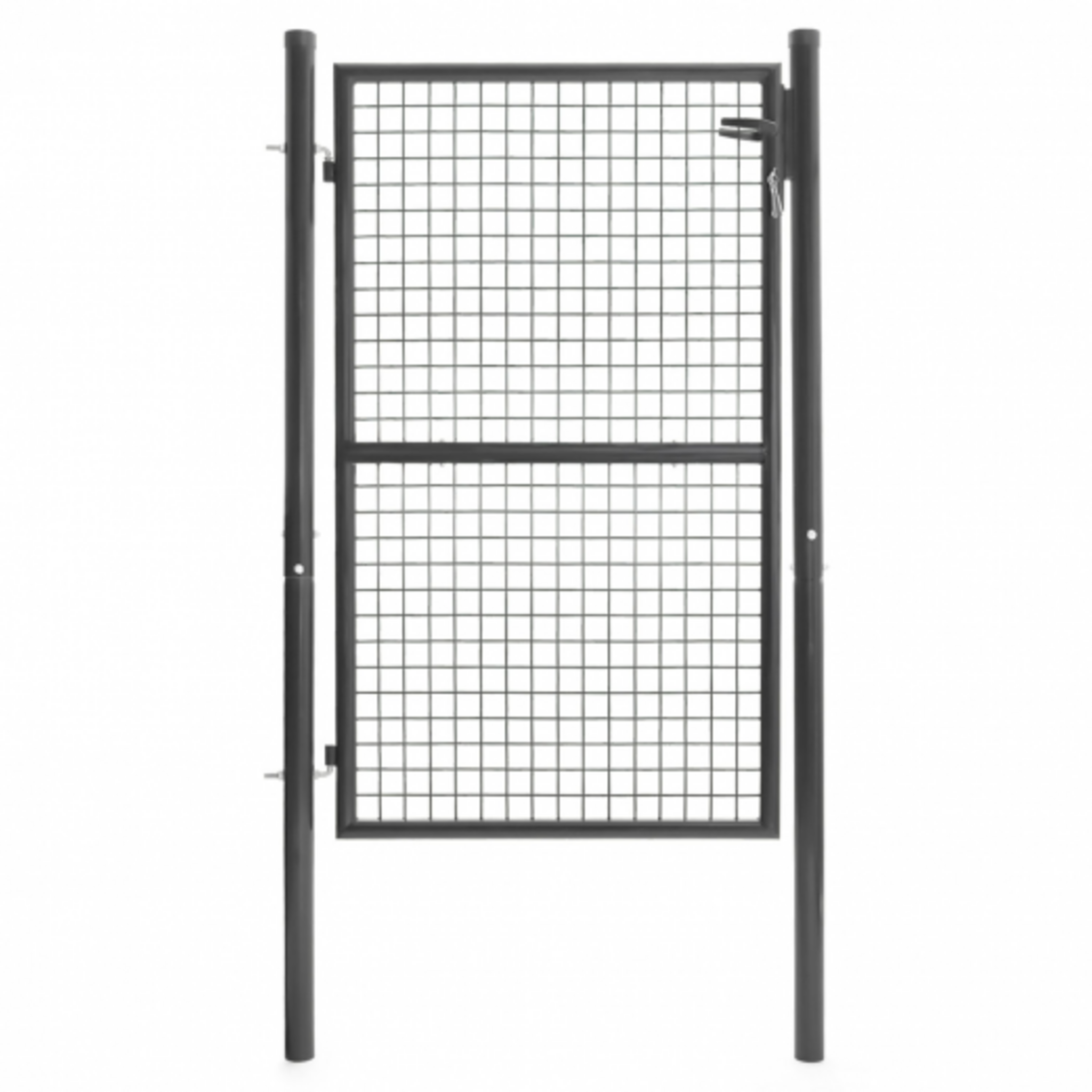Portillon de jardin 105 x 150 cm en acier gris anthracite avec serrure et poignée
