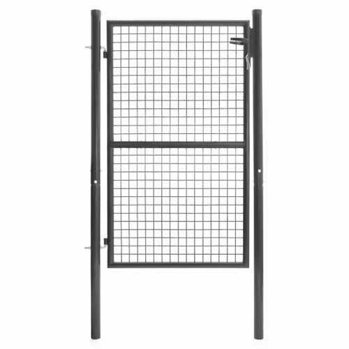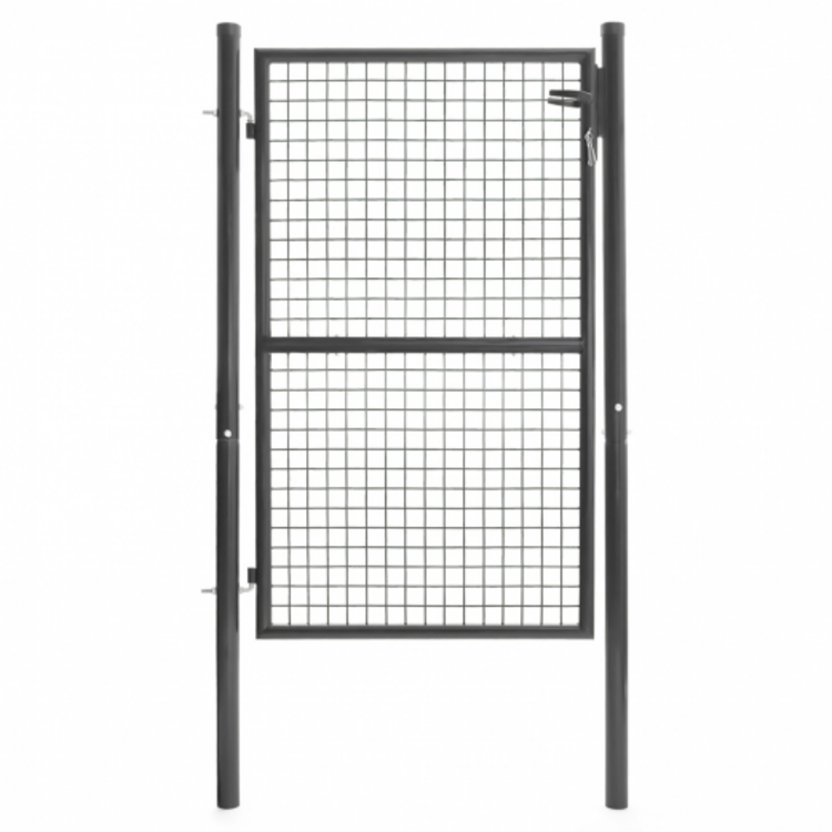 Son coloris gris anthracite et le design sobre et élégant s'intégreront harmonieusement à votre jardin. Il se fondra parfaitement dans le paysage tout en ajoutant une touche esthétique à votre extérieur.Idéal pour fermer une clôture résidentielle ou professionnelle. Très pratique, le portillon est équipé de deux poignées, une de chaque côté offrant un double sens d'ouverture pour une accessibilité optimale. La porte grillagée et la poignée avec serrure garantissent la sécurité de vos aménagements extérieurs. Le portillon de jardin peut être verrouillé à clé, et trois clés sont fournies pour une tranquillité d'esprit maximale. Livré avec un kit de visserie complet, le portillon est facile à installer. Il vous suffit de sceller les poteaux dans le sol et de fixer la porte et les poignées selon les instructions fournies.Les deux poteaux de 6 cm de diamètre à sceller solidement dans le sol assurent une stabilité maximale. Cela rend le portillon résistant même en cas de fortes intempéries ! Fabriqué en acier, le portillon est conçu pour résister aux conditions extérieures. Son revêtement antirouille garantit une longévité exceptionnelle. N'hésitez plus et laissez vous tenter par ce portillon en métal gris qui se fondra à merveille dans votre jardin ! Dimensions du portillon de jardinDimensions globales : Longueur 105 x hauteur 200 cm Dimensions hors sol : L. 105 x H. 150 cmDimensions de la porte : L. 87 x H. 150 cmDiamètre des tubes de la porte : 4 cmHauteur des poteaux : 200 cm Diamètre des poteaux : 6 cm Dimensions des carreaux du grillage: L. 5 x H. 5 cmType de pose : scellement sur 50 cm Matériaux : Acier Coloris : gris anthraciteInclus : une poignée avec serrure, 3 clés, kit de visserie completÀ monter soi-même Retrouvez tous nos portillons de jardin sur notre boutique en ligne.