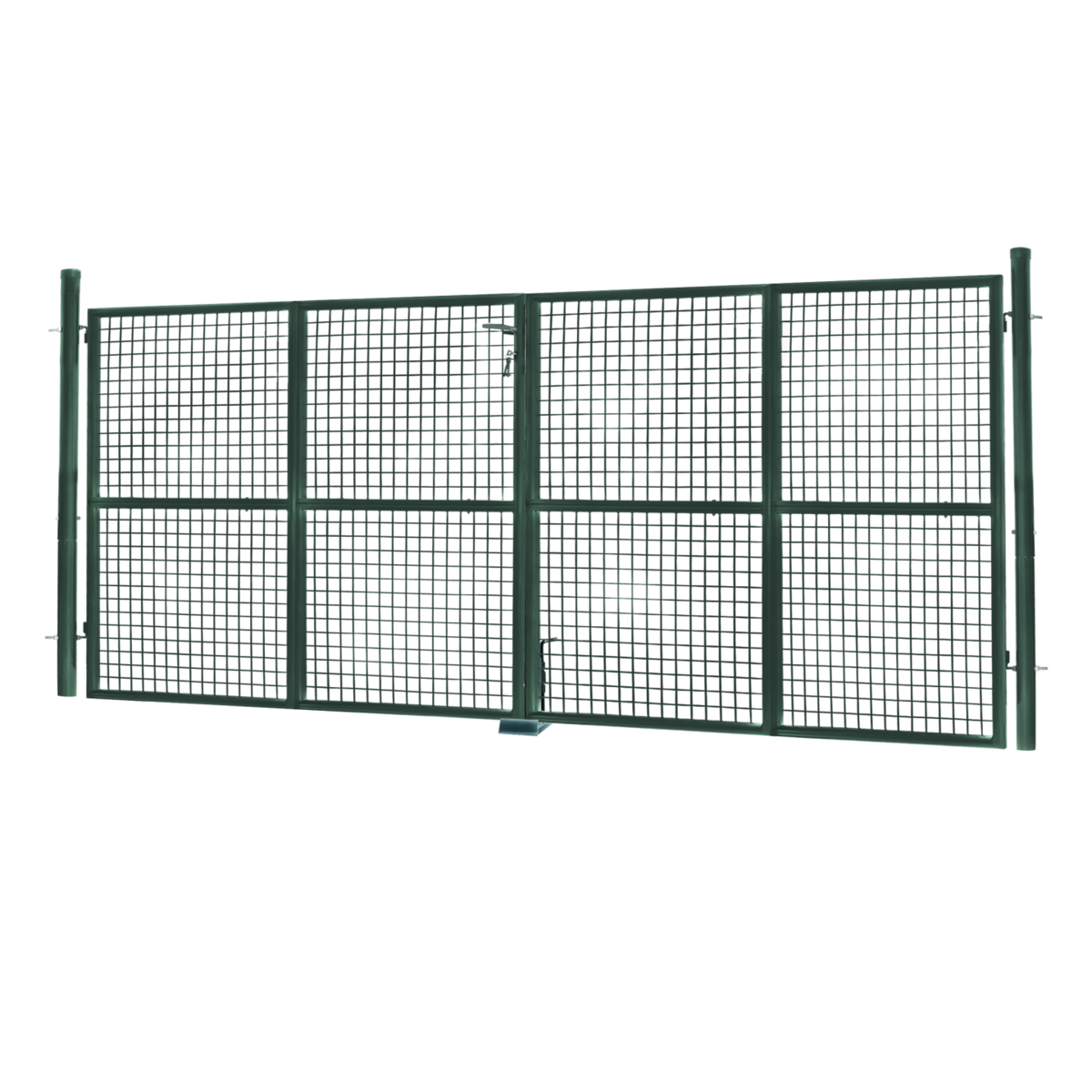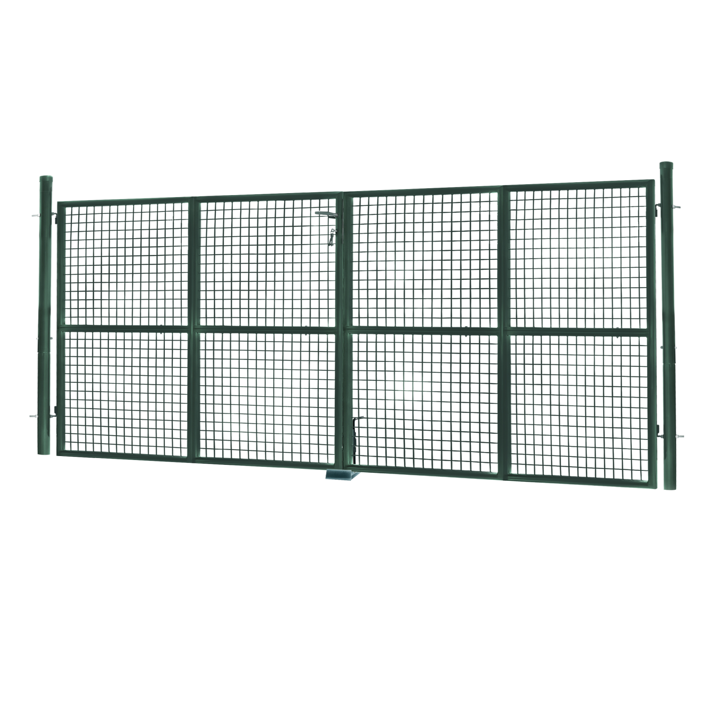 Portillon de jardin double porte 315 x 150 cm en acier vert avec serrure et poignée