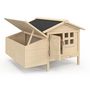 Le poulailler sur pilotis avec pondoir en bois XXL est l'habitat parfait pour vos poules. Conçu pour accueillir entre 3 et 5 poules, il allie praticité, robustesse et esthétisme pour répondre aux besoins des éleveurs amateurs ou confirmés.Sa structure sur pilotis assure une protection optimale contre l'humidité et les prédateurs, tout en garantissant un espace sécurisé et confortable pour vos animaux.Pratique, vous pourrez aisément ramasser les œufs grâce au toit amovible.Fabriqué en bois de pin Canadien et contreplaqué, ce poulailler est doté d'une rampe d'accès sur le côté pour que les poules puissent entrer et sortir facilement. Il comprend également un tiroir de déjection coulissant pour un nettoyage simple et rapide.Pensez à traiter ou lasurer votre poulailler pour une durée de vie prolongée !Dimensions du poulailler sur pilotis XXLDimensions globales : Longueur 99 cm x largeur 90 cm x Hauteur 66 cmDimensions de l'espace couchage : L. 55 cm x l.79 cm x H.53 cmDimensions du pondoir : L. 30 x l. 79 cm x H.33 cmDimensions de la porte : l.22 cm x H. 30 cmDimensions de la porte latérale : L.68 x H. 29 cmMatériaux : Structure en bois de pin Canadien / contreplaqué / toit waterproof bituméColoris : bois naturel / toit grisConvient pour 3 à 5 poulesÀ monter soi-même : OuiVisserie incluse : OuiDécouvrez également tous nos modèles de poulaillers disponibles sur notre boutique en ligne !