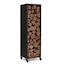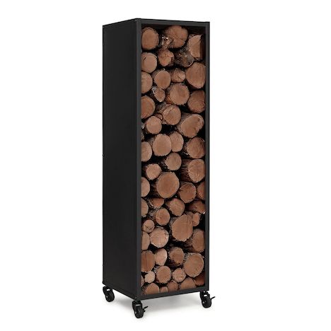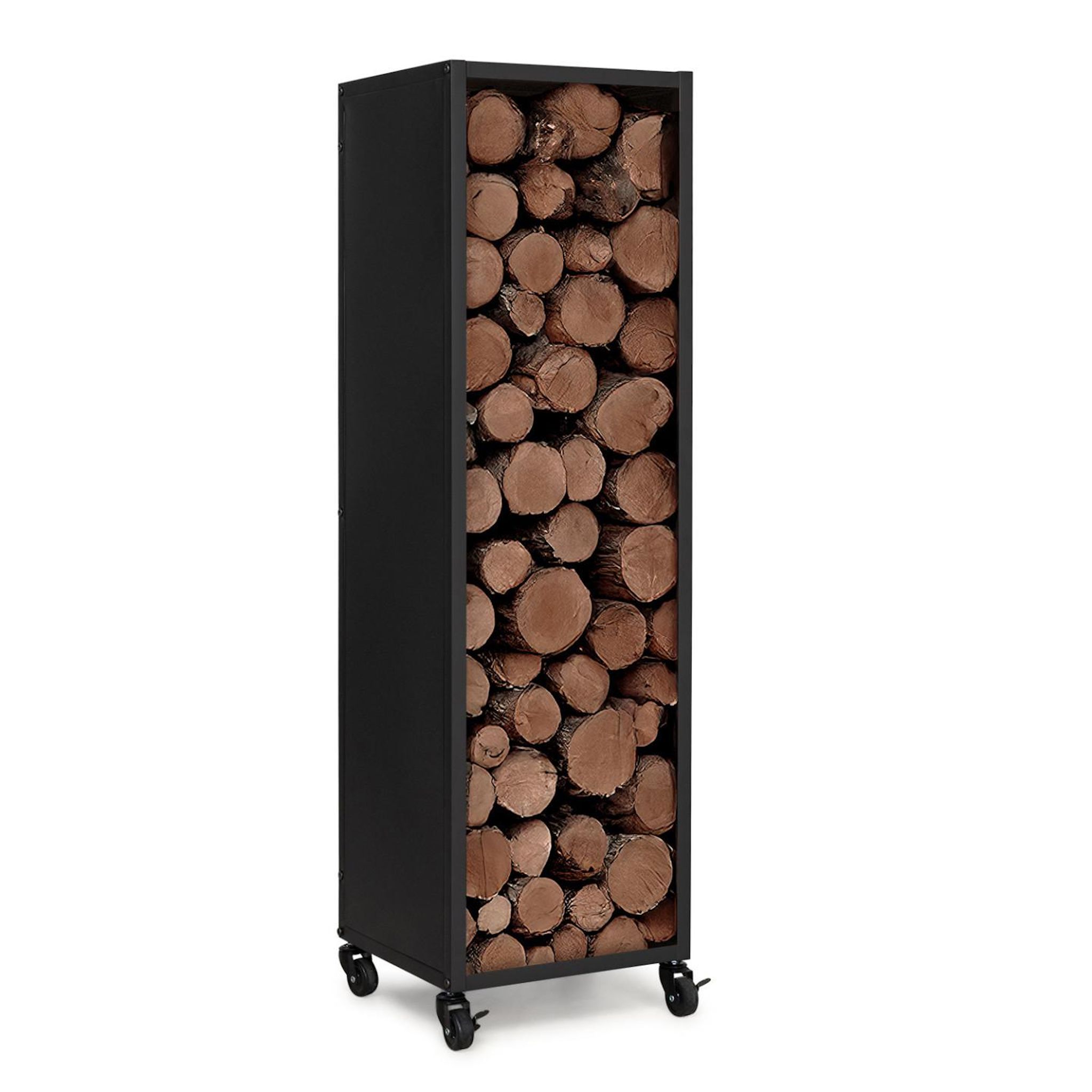 Range bûches vertical plein acier noir H. 112 CM pour cheminée avec roulettes