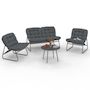 Salon de jardin ARONA bas 4 places en métal gris anthracite et coussins gris avec canapé, fauteuils et table