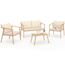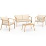 Salon de jardin bas MALTA 4 places structure en métal effet bois, lanières et coussins beiges