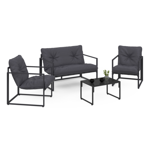 Salon de jardin bas NAIROBI 4 places en acier gris anthracite