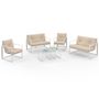 Salon de jardin bas NAIROBI 6 places en acier blanc et coussins beiges