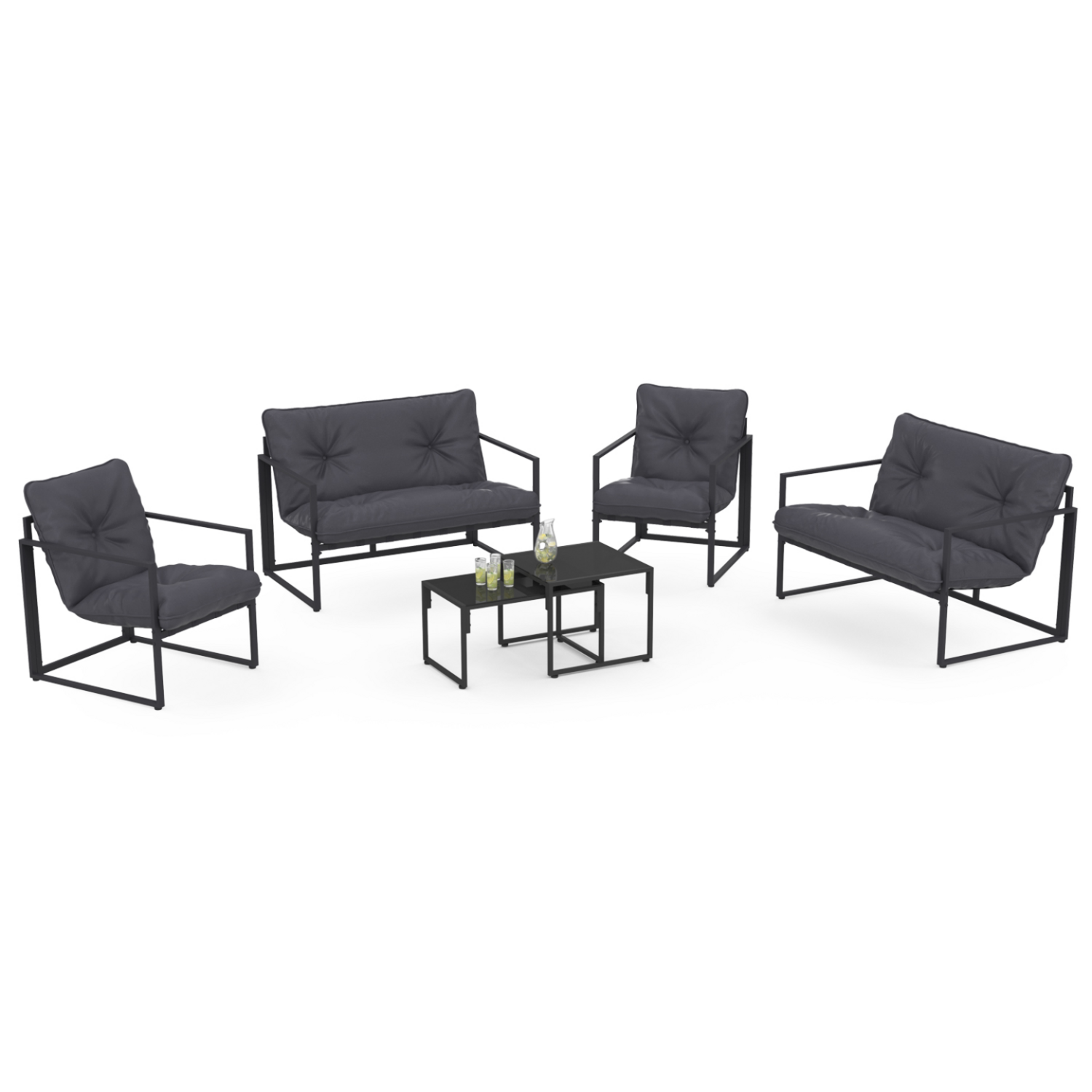 Salon de jardin bas NAIROBI 6 places en acier gris anthracite