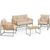 Salon de jardin bas RIO 4 places structure métal vert, cordage effet rotin clair et coussins beige