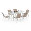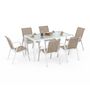 Salon de jardin MADRID table 150 CM et 6 chaises empilables blanc et beige