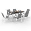 Salon de jardin MADRID table 150 CM et 6 chaises empilables blanc et gris