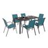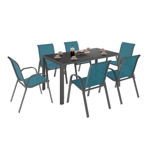 Salon de jardin MADRID table 150 CM et 6 chaises empilables bleu canard