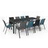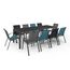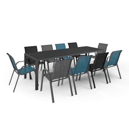 Salon de jardin MADRID table 240 CM et 10 chaises empilables mix color bleu, gris et noir