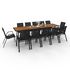 Salon de jardin NOUMEA table extensible 135/270 cm plateau effet bois et 12 chaises empilables noir et bois