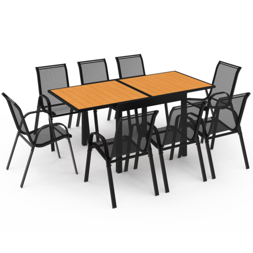 Salon de jardin POLY extensible table 90-180 CM et 8 chaises bois et noir