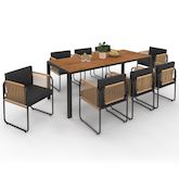 Prenez vos repas en plein air et invitez votre famille et vos amis à se réunir autour de ce salon de jardin RIO ! Avec sa capacité d'accueil de 8 personnes, profitez de moments chaleureux à plusieurs et échangez en toute convivialité ! Grâce à ses 8 chaises avec accoudoirs, cet ensemble de jardin propose design et facilité d'installation. Sa structure en acier, pensée pour les repas en extérieur, lui confère robustesse et longévité.Composé d'un plateau de table en verre trempé effet bois, le salon RIO apporte modernité et design dans votre jardin ou sur votre terrasse. La structure en acier de la table ainsi que les chaises en textilène et polyrotin avec coussin en polyester facilitent l'entretien de cet ensemble table et chaises de jardin.De plus, si vous souhaitez protéger votre salon de jardin, installez une housse pour chaises de jardin ainsi qu'une housse pour table de jardin.Profitez des beaux jours grâce au salon de jardin noir et bois RIO et usez de son ergonomie pour partager en famille ou entre amis des moments de bien-être ! Dimensions du salon de jardin 8 places noir et boisEnsemble composé d'une table et de 8 chaisesDimensions de la table : Longueur 190 cm x largeur 80 cm x Hauteur 73 cmStructure de la table et des chaises : acier Plateau de table en verre trempé : 5 mmDimensions d'une chaise : L. 50,5 x l. 50 x H. 65 cmMatière du dossier et de l'assise : polyrotin, textilène et coussins en polyesterColoris : noir et effet boisÀ monter soi-mêmeDécouvrez également tous nos salons de jardin sur notre boutique en ligne !