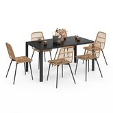 En savoir +Prenez vos repas en plein air et invitez votre famille et vos amis à se réunir autour de ce salon de jardin SUMMER en métal noir et imitation rotin ! Avec sa capacité d'accueil de 6 personnes, profitez de moments chaleureux à plusieurs et échangez en toute convivialité ! Fabriqué avec des matériaux de qualité, le salon de jardin vous garantit stabilité, robustesse et résistance au soleil ainsi qu'aux intempéries ! Ce salon de jardin avec ses pieds en métal, son plateau en verre trempé et ses chaises en imitation rotin apportera design et esthétisme à votre extérieur ! Le plateau en verre trempé, en plus de sa solidité, permet une facilité d'entretien, tandis que les chaises avec leur large assise en imitation rotin offrent confort et style.De plus, si vous souhaitez protéger votre salon de jardin, installez une housse pour chaises de jardin ainsi qu'une housse pour table de jardin.Profitez des beaux jours grâce au salon de jardin SUMMER et usez de son ergonomie pour partager en famille ou entre amis des moments de bien-être ! Dimensions du salon de jardin SUMMER 6 places Ensemble composé d'une table et de 6 chaises Dimensions de la table : Longueur 150 cm x largeur 80 cm x Hauteur 73 cmStructure de la table et des chaises : acier Plateau de table en verre trempé : 5 mmDimensions d'une chaise : L. 54 x l. 43 x H. 83 cmDimensions de l'assise : L. 43 x l. 36 x H. 45 cmColoris : noir et rotin À monter soi-mêmeDécouvrez également tous nos salons de jardin sur notre boutique en ligne !