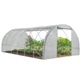 Simple à installer cette grande serre est indispensable si vous voulez cultiver vos légumes et fruits avec une meilleure qualité. Elle garantit à vos légumes d'être à l'abri de l'humidité qui peut engendrer des maladies. Elle a aussi une efficacité contre le froid qui peut endommager vos cultures. L'été la bâche entièrement relevable est pratique, car elle permet d'aérer votre serre afin de renouveler l'air et d'apporter de la fraîcheur.Cette serre tunnel de 18 m² se compose de 7 arceaux renforcés sur lesquels une bâche armée anti-UV, de 130g/m² vient se fixer. Cette bâche est ultra résistante aux diverses conditions climatiques. Quatre barres anti-tempêtes viennent renforcer la structure pour un maintien optimal.On accède à l'intérieur de cette grande serre tunnel par une large porte zippée qui s'ouvre et se ferme facilement avec son zip en résine renforcé. Pour une bonne aération, elle dispose d'une bâche complétement relevable jusqu'en haut et de 6 fenêtres avec filet moustiquaire qui permettent de contrôler la température désirée.La serre tunnel de jardin blanche s'étend sur 6 mètres de longueur par 3 mètres de largeur pour une surface totale au sol de 18 m². En hauteur, elle a atteint 2 mètres au centre de son arc. Si vous disposez d'assez d'espace pour cette grande serre tunnel relevable, c'est l'occasion de profiter d'une belle promotion !Dimensions de la grande serre tunnel relevableDimensions globales : Longueur 600 x largeur 300 x Hauteur 200 mSurface totale : 18 m²Bâche renforcée en polyéthylène (PE) 130 g/m² anti-UVTubes en acier galvanisé 25 mmBarres de renfort anti-tempête en acier galvanisé, épaisseur 19 mm1 porte d'entrée zippée avec 2 clips : L. 125 x H. 180 cmSes côtés sont inclinés pour une plus grande résistance face au ventÀ monter soi-mêmeVoici notre bâche de rechange pour cette serre de jardin 24m² verte disponible sur notre boutique en ligne.Retrouvez également tous nos modèles de serres tunnel disponibles sur notre boutique en ligne !