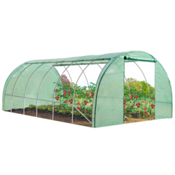 Simple à installer cette grande serre est indispensable si vous voulez cultiver vos légumes et fruits avec une meilleure qualité. Elle garantit à vos légumes d'être à l'abri de l'humidité qui peut engendrer des maladies. Elle a aussi une efficacité contre le froid qui peut endommager vos cultures. L'été la bâche entièrement relevable est pratique, car elle permet d'aérer votre serre afin de renouveler l'air et d'apporter de la fraîcheur.Cette serre tunnel de 18 m² se compose de 7 arceaux renforcés sur lesquels une bâche armée anti-UV, de 140g/m² vient se fixer. Cette bâche est ultra résistante aux diverses conditions climatiques. Quatre barres anti-tempêtes viennent renforcer la structure pour un maintien optimal. On accède à l'intérieur de cette grande serre tunnel par une large porte zippée qui s'ouvre et se ferme facilement avec son zip en résine renforcé. Pour une bonne aération, elle dispose d'une bâche complétement relevable jusqu'en haut et de 6 fenêtres avec filet moustiquaire qui permettent de contrôler la température désirée.La serre tunnel de jardin verte s'étend sur 6 mètres de longueur par 3 mètres de largeur pour une surface totale au sol de 18 m². En hauteur, elle a atteint 2 mètres au centre de son arc. Si vous disposez d'assez d'espace pour cette grande serre tunnel relevable, c'est l'occasion de profiter d'une belle promotion !Dimensions de la grande serre tunnel relevable- Dimensions : Longueur 600 cm x Largeur 300 cm x Hauteur 200 cm- Tubes en acier galvanisé diamètre 25 mm- 4 barres anti-tempête- Bâche renforcée en polyéthylène anti-UV- 6 fenêtres avec filet moustiquaire- 1 large porte d'entrée zippée L.125 x H.180 cm- 2 clips pour relever chaque porte- Fermeture zippée sur les longueurs pour relever la bâche + 12 crochets en plastique vert pour les accrocher- Zip en résine renforcé- Jupe de 10 cm- À monter soi-mêmeLivraison par transporteur à votre domicile (sauf Corse, dans ce cas il faut demander un devis préalable).Merci de nous fournir un numéro de portable pour la prise de rendez-vous pour la livraison.
