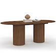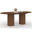Table à manger extensible ovale JULIETTE 6-10 personnes pieds cylindriques lattes tasseau bois coloris noyer 160-200 cm
