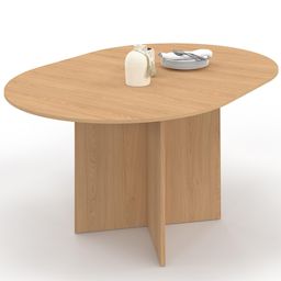 Laissez-vous séduire par la table à manger extensible MARTHE, au design moderne et raffiné. Son plateau ovale extensible et son piétement géométrique en font une pièce maîtresse élégante qui sublimera votre salle à manger.Avec son pied graphique original et son plateau de 110 cm, cette table apporte à la fois modernité et sophistication à votre intérieur. Parfaite pour recevoir vos proches ou travailler confortablement depuis chez vous, elle allie esthétique et praticité.Grâce à son extension de 40 cm, la table MARTHE s'agrandit facilement pour atteindre 150 cm de long. Elle peut ainsi accueillir jusqu'à 8 convives en un clin d'œil, idéale pour les grandes tablées en famille ou entre amis.Sa forme ovale favorise la convivialité tout en facilitant la circulation autour de la table. C'est l'option idéale pour optimiser l'espace sans compromettre le style.Polyvalente et fonctionnelle, la table MARTHE s'intègre dans tous les types d'intérieurs grâce à son coloris bois chaleureux. Son piétement au design audacieux lui confère une allure résolument contemporaine.Optez pour le style moderne et craquez pour la table ovale 4-8 personnes MARTHE 110-150 cm !Dimensions de la table à manger MARTHE Dimensions globales avec l'extension : Longueur 150 cm x largeur 110 x Hauteur 75 cm Dimensions globales de la table repliée : L. 110 x l. 110 x H. 75 cm Matériaux : MDFColoris : boisPeut accueillir jusqu'à 8 convivesÀ monter soi-mêmeDécouvrez l'ensemble de notre collection moderne sur notre boutique en ligne !