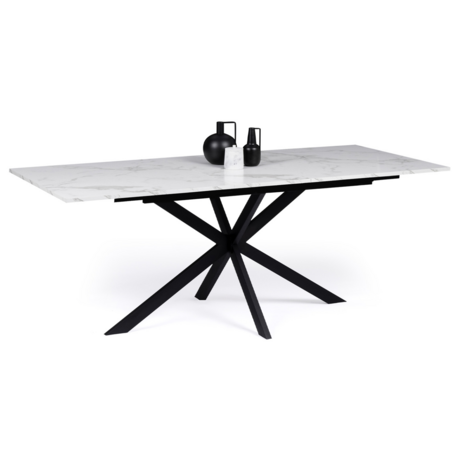 Table à manger extensible rectangle ALIX 6-10 personnes pied araignée noir plateau effet marbre blanc ALASKA 160-200 cm
