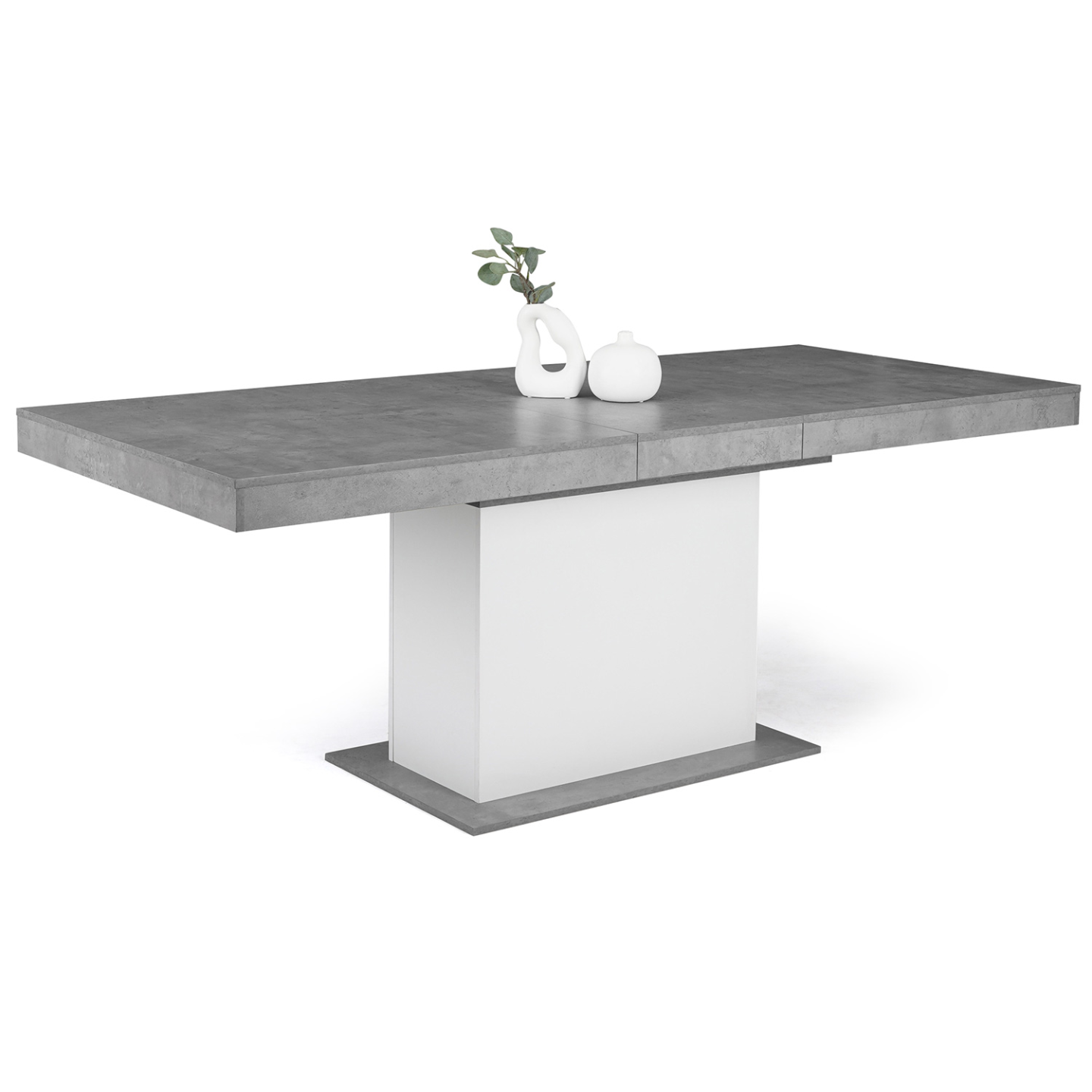 Table à manger extensible rectangle EDEN 6-10 personnes béton et blanc 160-200 cm