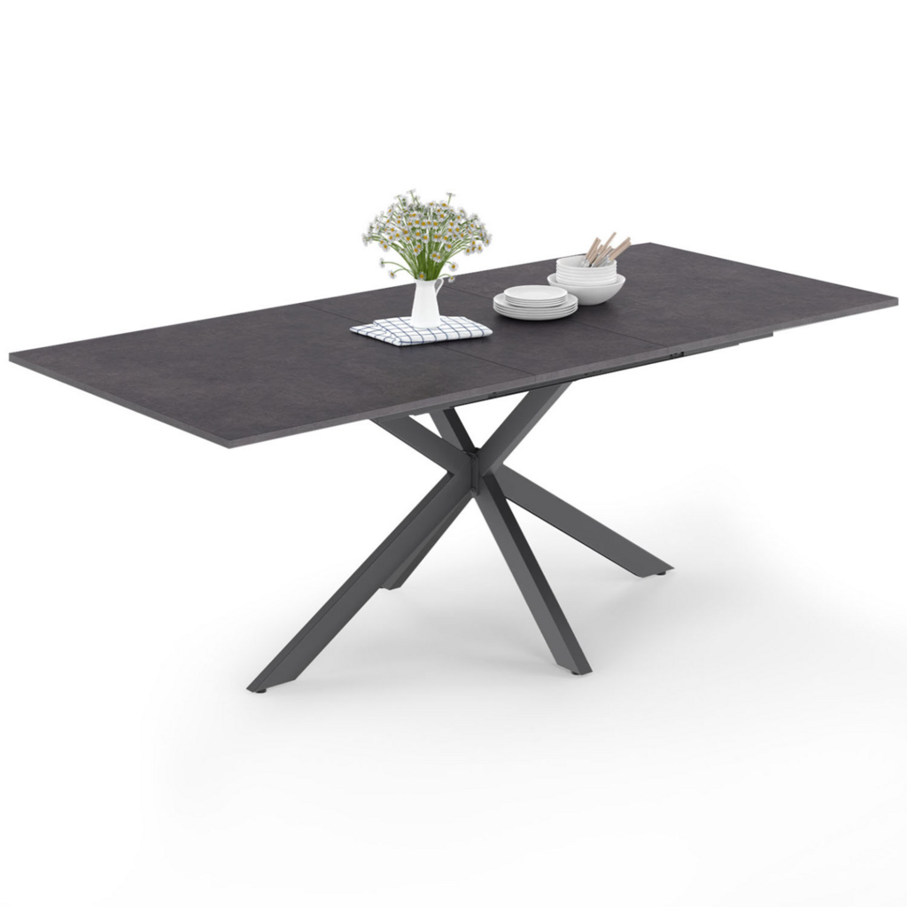 Table à manger extensible rectangle JASPE 6-10 personnes plateau effet béton pied araignée gris anthracite 160-200cm