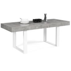 Vous avez une famille nombreuse ou aimez recevoir vos proches ? Préparez de bons repas et partagez-les sur une table de salle à manger moderne et tendance !Avec ses pieds en bois blanc et son plateau en particules de bois effet béton, cette table deviendra la pièce maîtresse de votre salle à manger. Son style unique et ses lignes épurées s'adaptera parfaitement aux univers contemporains et urbains.Repas de famille, soirée entre amis... la table à manger extensible 6-10 personnes s'adapte à vos événements grâce à son extension de 40 cm. Passez en un rien de temps à un plateau de 200 cm de long.En effet, les dimensions généreuses de cette table rectangulaire 160-200 cm x 80 cm vous permettent d'accueillir confortablement vos invités ou votre famille pour partager des moments de convivialité ! De plus, vous pourrez ranger vos serviettes de table, vos couverts ou autres ustensiles de cuisine dans son rangement intégré au plateau.Avec ses pieds larges et son grand plateau au look épais, la table extensible OREGON est d'une grande stabilité et très robuste ! Optez sans plus tarder pour la combinaison de son coloris blanc et son plateau effet béton, une association parfaite pour apporter un look chic et tendance à votre salle à manger !Dimensions de la table à manger extensible OREGON façon béton et blancDimensions globales : Longueur 160 - 200 cm x largeur 80 cm x Hauteur 75 cmRallonge : 40 cmHauteur du rebord autour du plateau : 12 cmLargeur des pieds : 10 cmDimensions de l'espace de rangement sous le plateau : L. 40 cm x l. 18 cm x H. 5 cmMatériaux : Panneaux de particules (PB) de 1,5 cm d'épaisseurColoris : effet béton et blancCapacité : 6 à 10 personnesÀ monter soi-même : ouiRetrouvez l'ensemble de nos tables à manger extensible sur notre boutique en ligne !