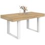 Vous avez une famille nombreuse ? Vous aimez recevoir vos proches ? Préparez de bons repas et partagez-les sur une table de salle à manger industrielle et stylée. Avec ses pieds en bois blanc et son plateau en bois clair, la table PHOENIX bois et blanc s'intégrera parfaitement à votre intérieur en lui apportant un esprit loft moderne et design !Repas de famille, soirée conviviale entre amis... la table à manger extensible 4-6 personnes s'adapte à vos événements pour un moment convivial ! Grâce à son extension de 40 cm, passez en un rien de temps à un plateau de 160 cm de long pour accueillir toute la famille. Vous n'êtes que 4 ce soir ? L'extension se range discrètement sous le plateau, pour rester toujours à portée de main.Avec ses pieds larges et son grand plateau épais, la table bois industrielle PHOENIX est d'une grande stabilité et très robuste. Avec ses dimensions généreuses, cette table industrielle rectangulaire 120/160 x 80 cm vous permet d'accueillir de nombreux convives pour de merveilleux moments de partage.Cette table à l'aspect massif aux lignes épurées sera la pièce maîtresse de votre salle à manger. Son style lui donne un aspect industriel qui s'adapte parfaitement aux univers altiques et contemporains. La combinaison des coloris bois et blanc et d'un matériau chaleureux est une association parfaite pour apporter un look chic et sobre à votre salle à manger.Dimensions de la table de salle à manger extensible PHOENIXDimensions globales : Longueur 120-160 cm x largeur 80 cm x Hauteur 75 cmHauteur des rebords du plateau : 12 cmLargeur des pieds : 9,7 cmCapacité : 4 à 6 personnesMatériaux : Particules de bois (PB)À monter soi-mêmeDécouvrez l'ensemble de notre gamme de tables industrielles sur notre boutique en ligne !