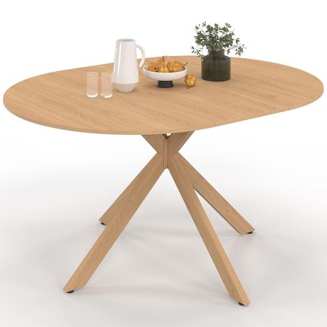 Table à manger extensible ronde ALIX 4-8 personnes pied araignée bois effet hêtre 110-150 cm