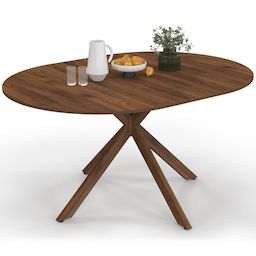 Table à manger extensible ronde ALIX 4-8 personnes pied araignée noyer 110-150 cm