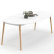 Table à manger extensible ronde ANGELA 4-10 personnes blanc pied bois 110 - 200 cm