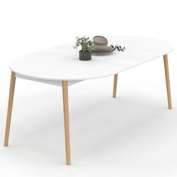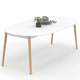 Avec son design tendance et intemporel, la table à manger ronde ANGELA 4-10 personnes blanc pieds bois s'adaptera parfaitement à tous les styles de décoration.Stable et robuste, cette table à manger est idéale pour une utilisation quotidienne. Avec son plateau blanc et ses 4 pieds en bois biseautés style scandinave, elle apportera une touche cosy et chaleureuse à votre salle à manger.Parfaite pour les petits espaces, cette table n'encombra pas votre pièce de vie grâce à sa forme arrondie. Partagez de bons moments en famille ou entre amis autour de la table à manger scandinave ANGELA et accueillez jusqu'à 10 personnes ! N'attendez plus et craquez pour cette table à manger ronde ANGELA blanc et bois au diamètre 110-200 cm ! Dimensions de la table à manger ronde ANGELA bois et blanc 110-200 cmDimensions globales : Diamètre 110-200 cm x Hauteur 75 cmMatériaux : plateau en MDF et pieds en boisColoris : blanc et bois Capacité : 4-10 personnesÀ monter soi-mêmeRetrouvez l'ensemble de nos tables à manger sur notre boutique en ligne !