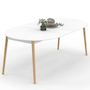 Avec son design tendance et intemporel, la table à manger ronde ANGELA 4-10 personnes blanc pieds bois s'adaptera parfaitement à tous les styles de décoration.Stable et robuste, cette table à manger est idéale pour une utilisation quotidienne. Avec son plateau blanc et ses 4 pieds en bois biseautés