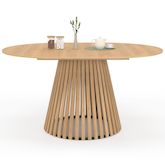 Table à manger extensible ronde CARMEN 4-8 personnes pied bois en lattes et plateau bois 110 - 150 cm