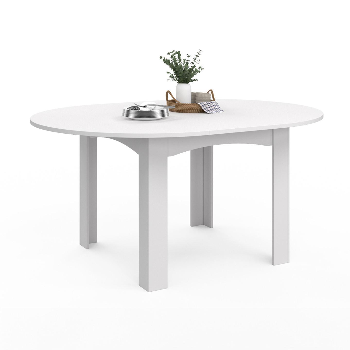 Table à manger extensible ronde DONA 4-8 personnes blanc 110-150 cm